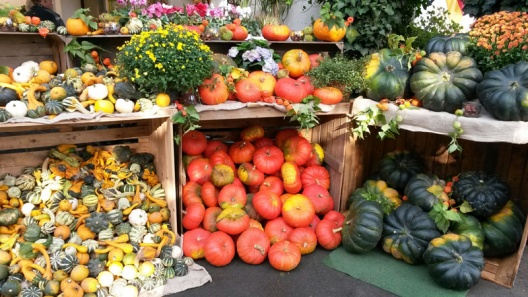 im Herbst Kürbisse, Zierkürbisse und Stiefmütterchen
